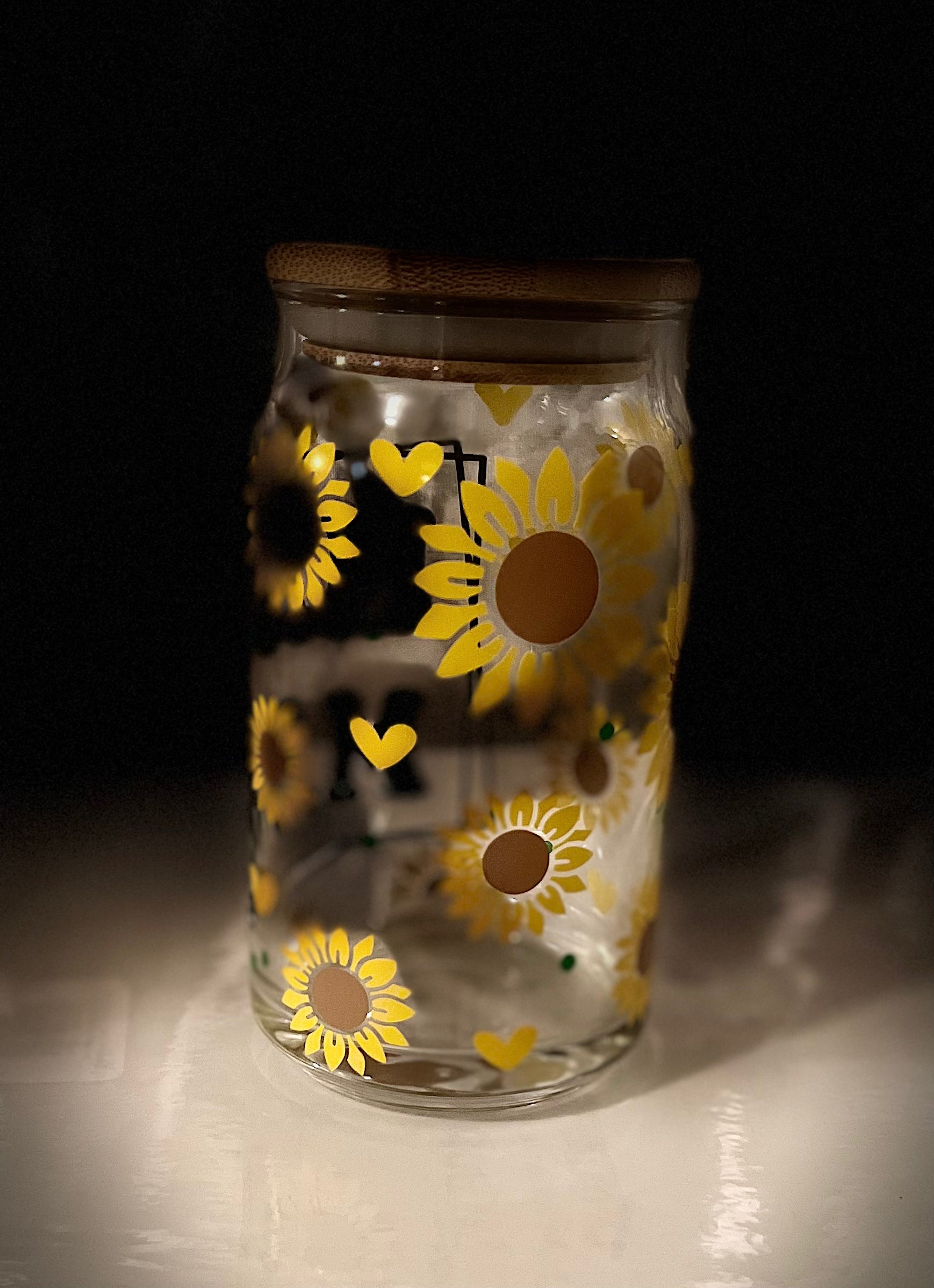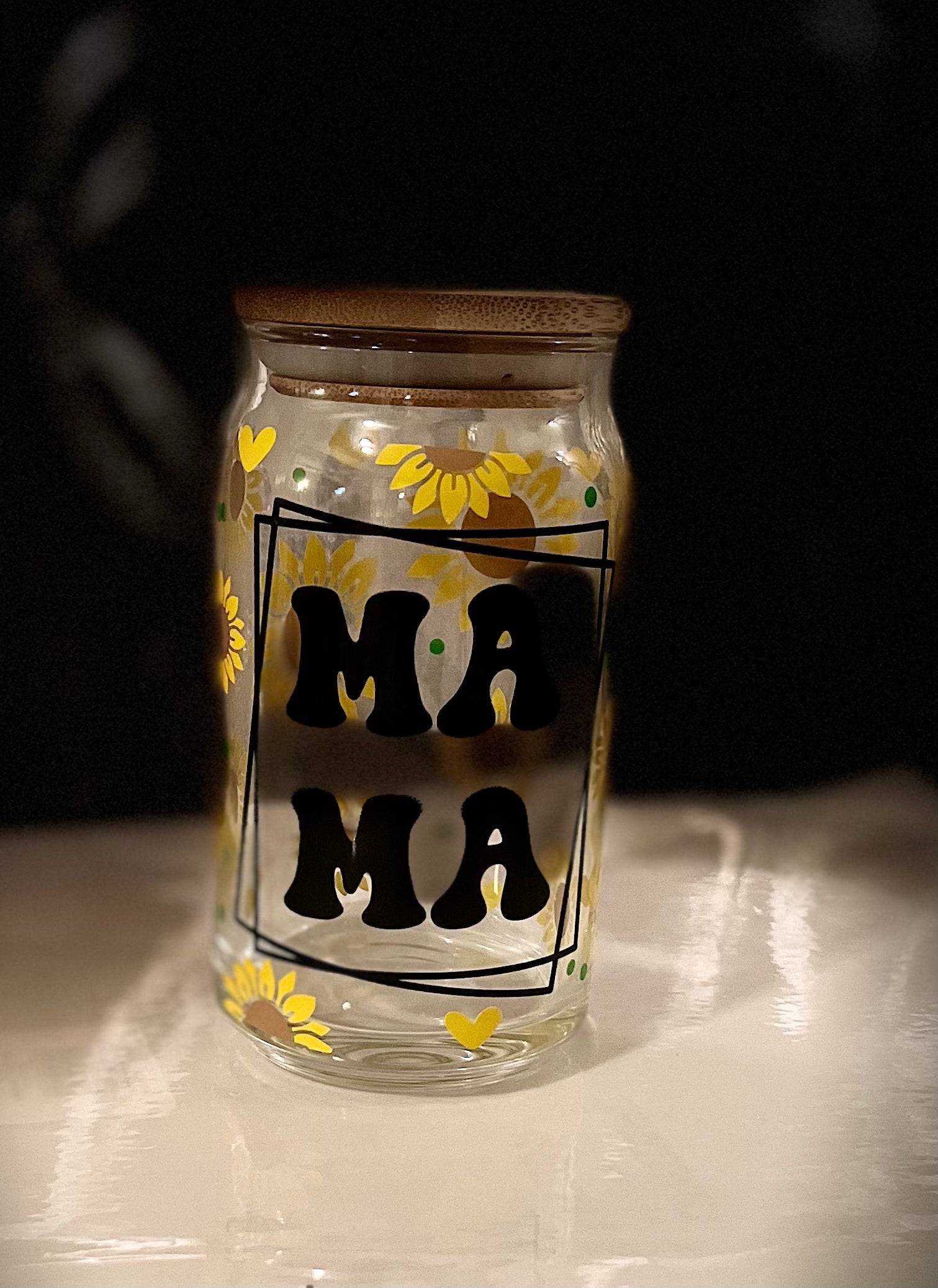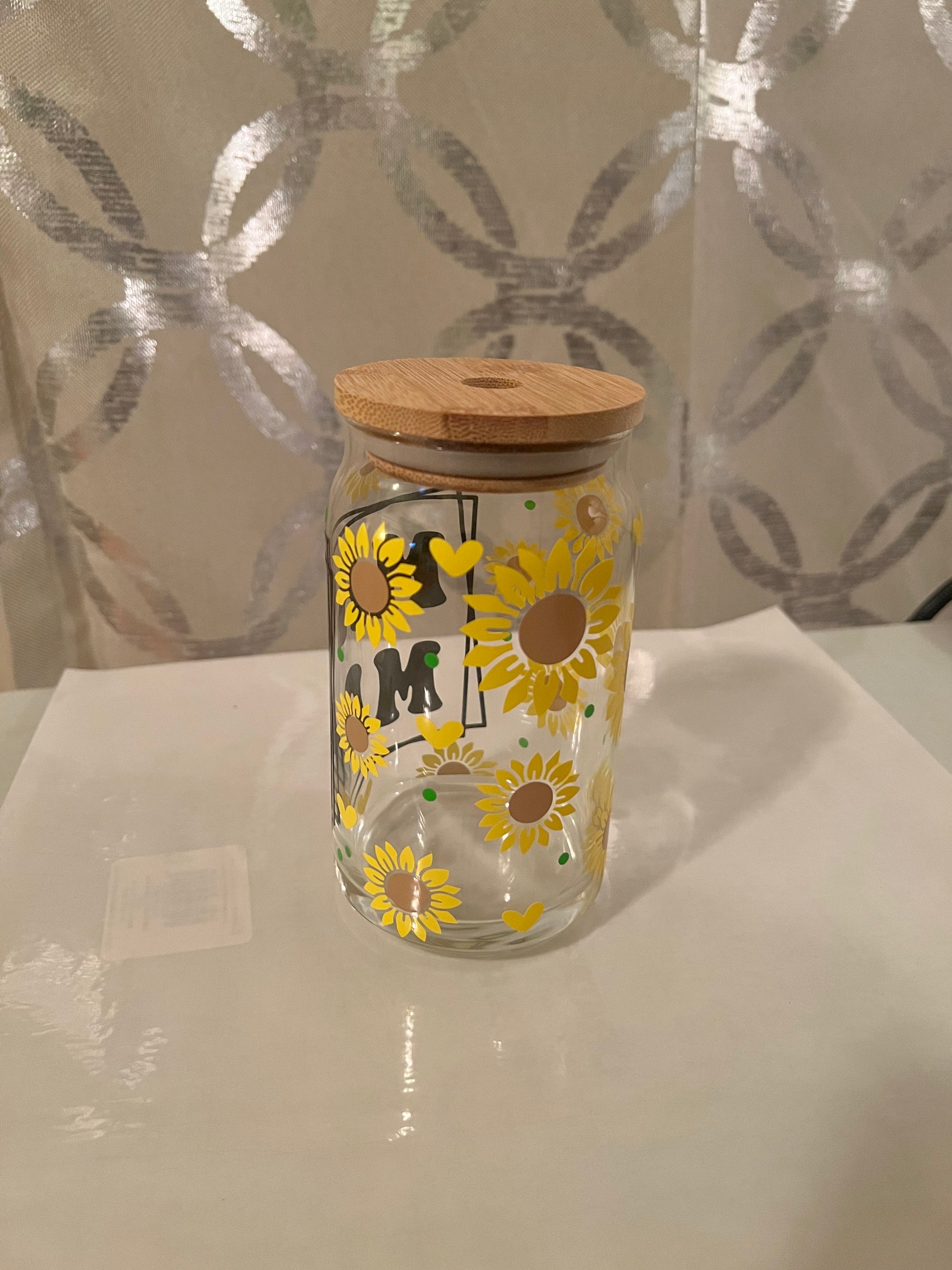 Drink your favorite beverage or iced coffee in this 16 oz glass. With lid.